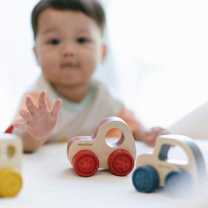 The Timber Trail Vehicles Set showcases a unique and clean design, featuring rugged wheels that easily roll forward and backward, providing hours of enjoyable floor play. These vehicles are crafted from sustainable rubberwood, ensuring both durability and eco-friendliness.