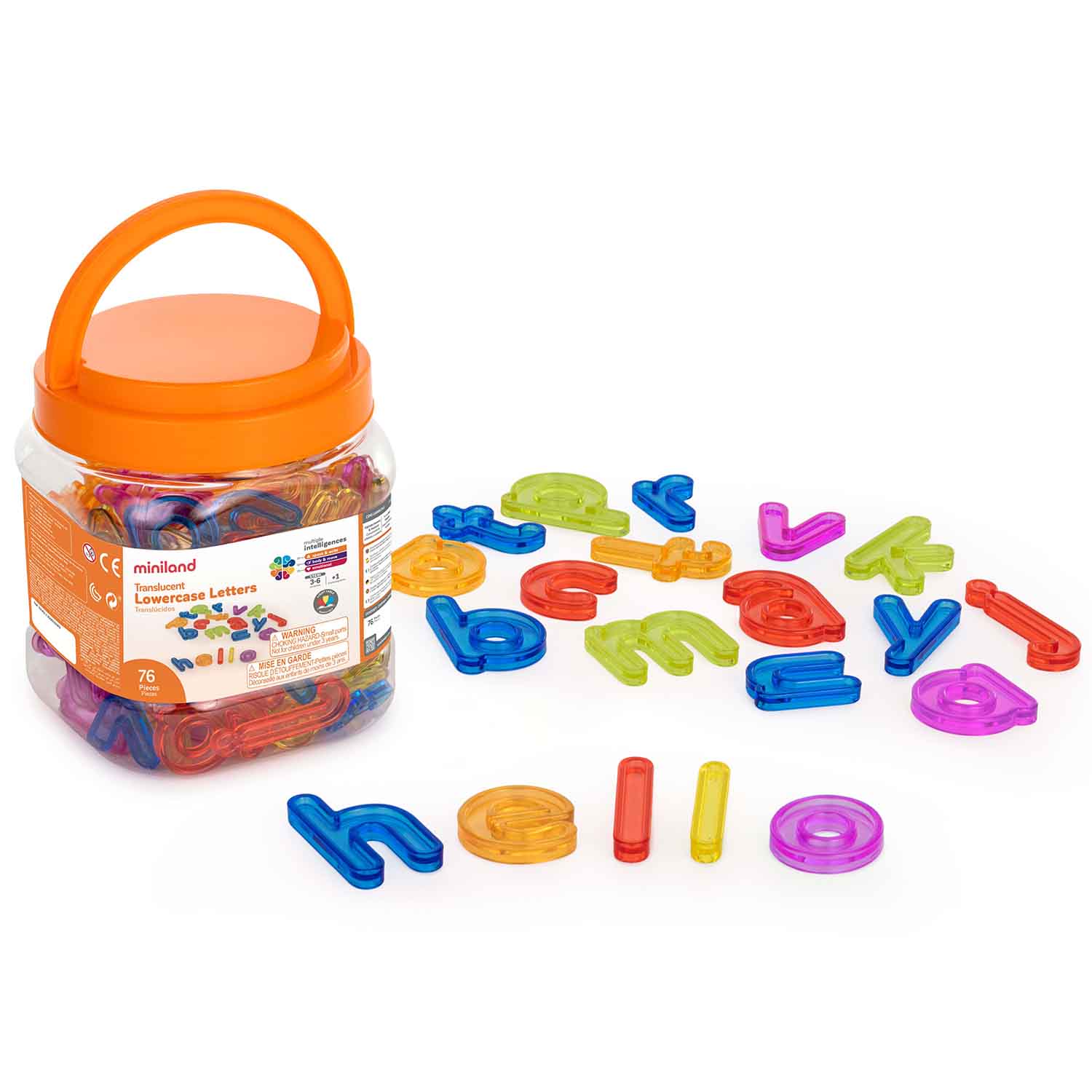 Great for the light table, this translucent lowercase letter set includes 76 pieces in five different colors.