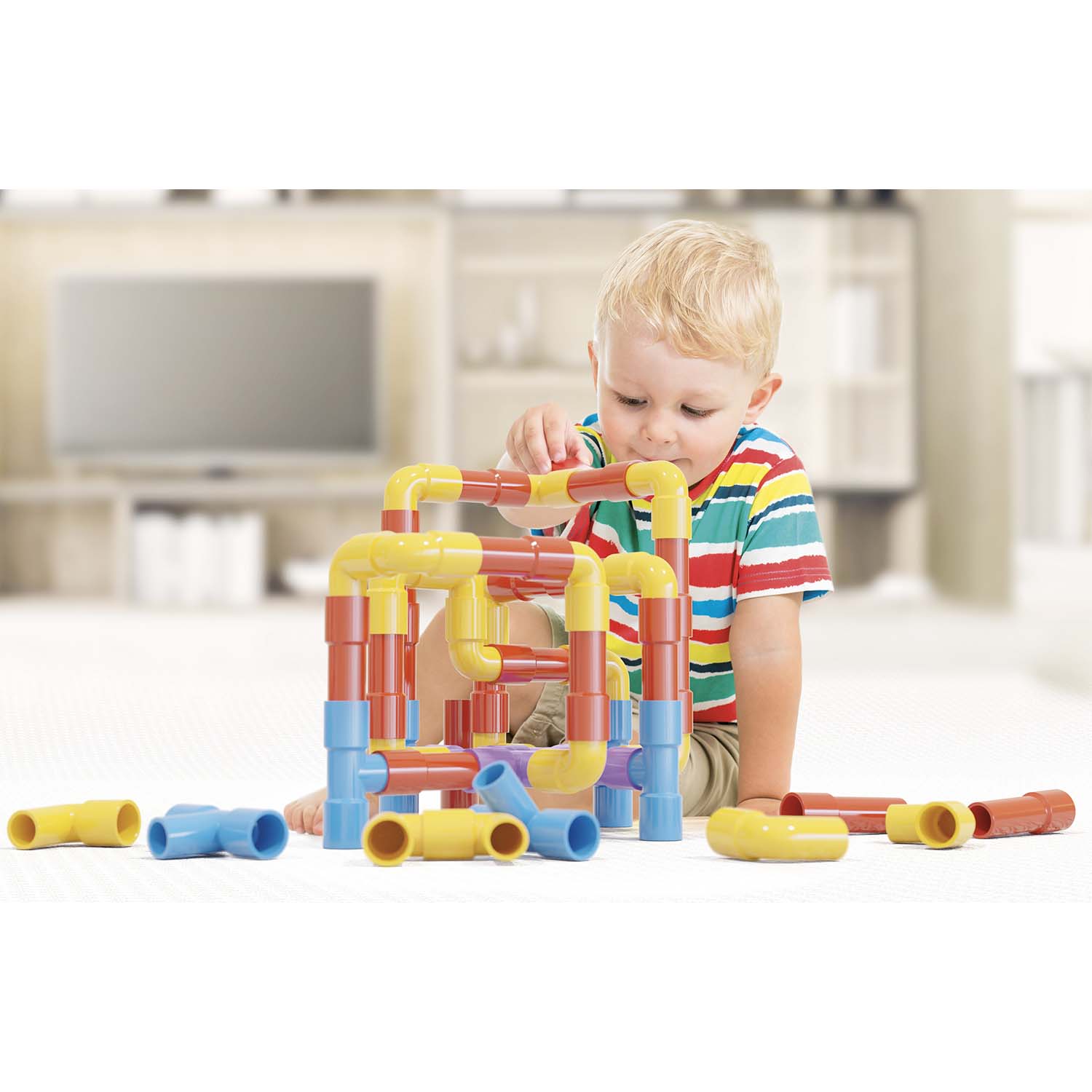 Build incredible mazes of the pipeline with 4 types of interlocking tubes.