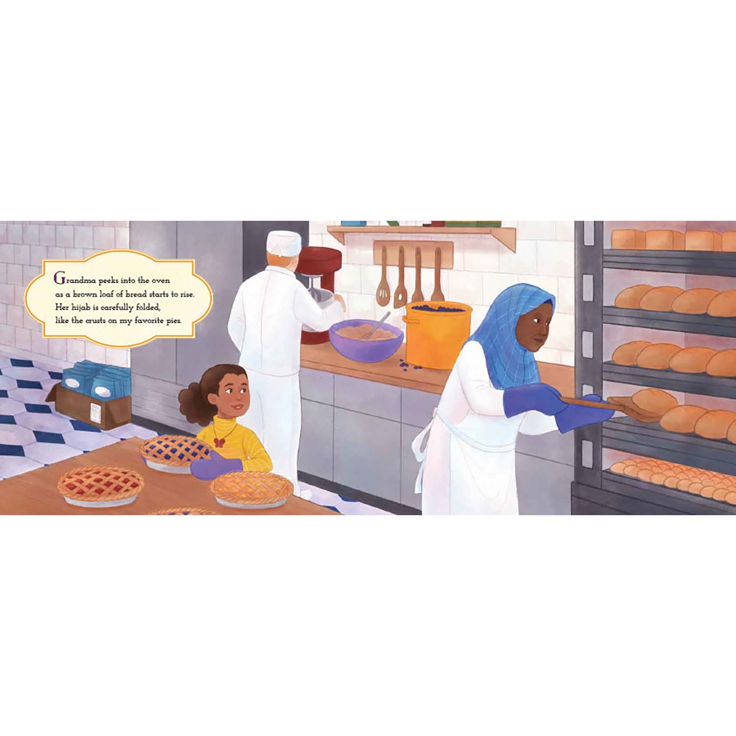Grandma's hijab clasps under her chin. Auntie pins hers up with a whimsical brooch. Jenna puts a sun hat over hers when she hikes. Iman wears a sports hijab for tae kwon do. As a young girl observes the women in her life and how each covers her hair a different way, she dreams of the possibilities in her own future and how she might express her personality through her hijab.