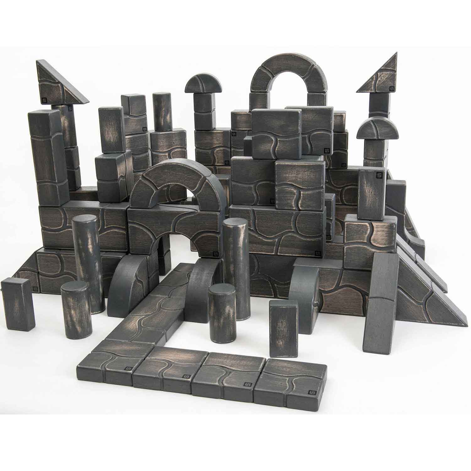 100-piece set includes half units, full units, pillars, columns, gothic arches, buttresses, corners, roman arches, half circles, circle curves, triangles, thin units and more—a total of 19 shapes!