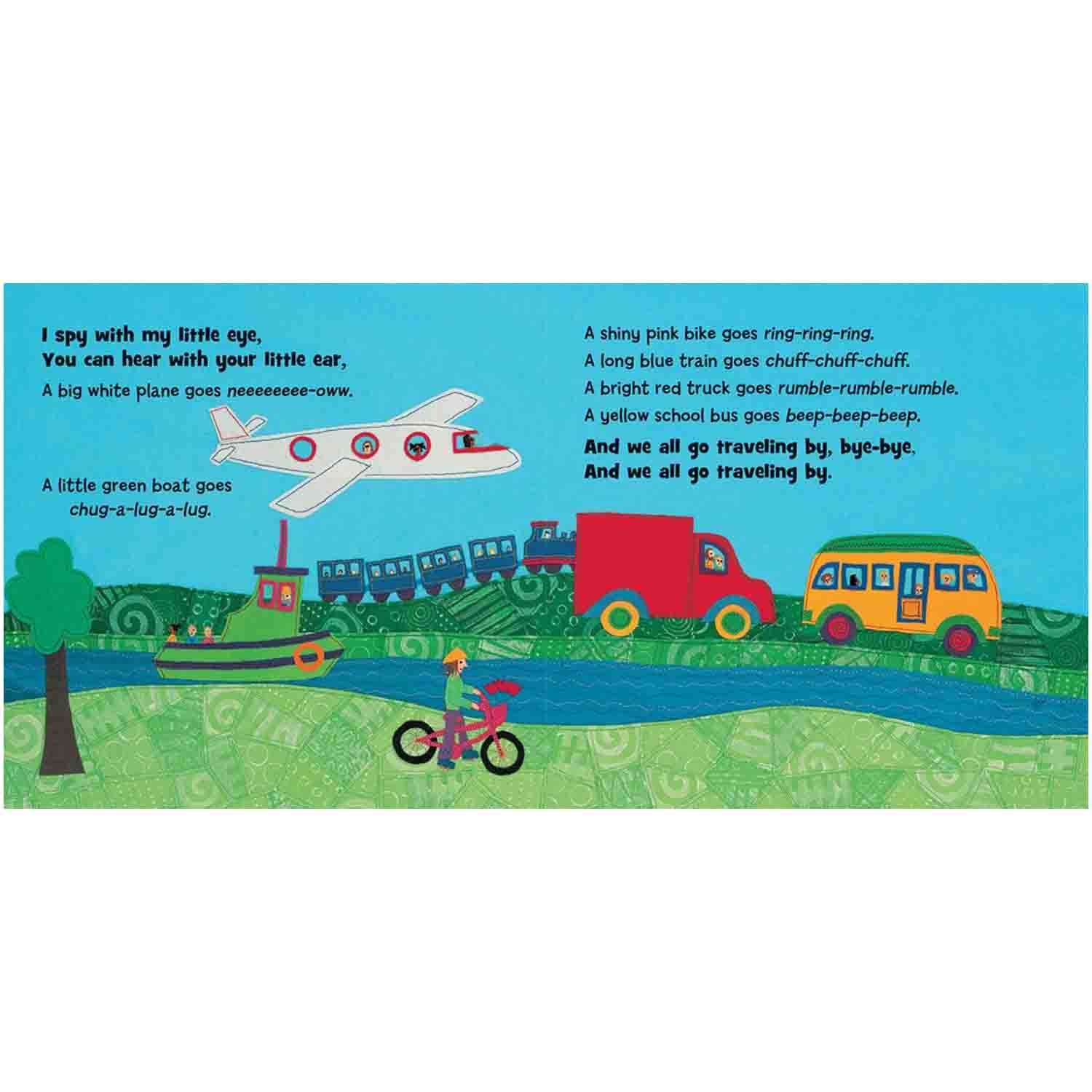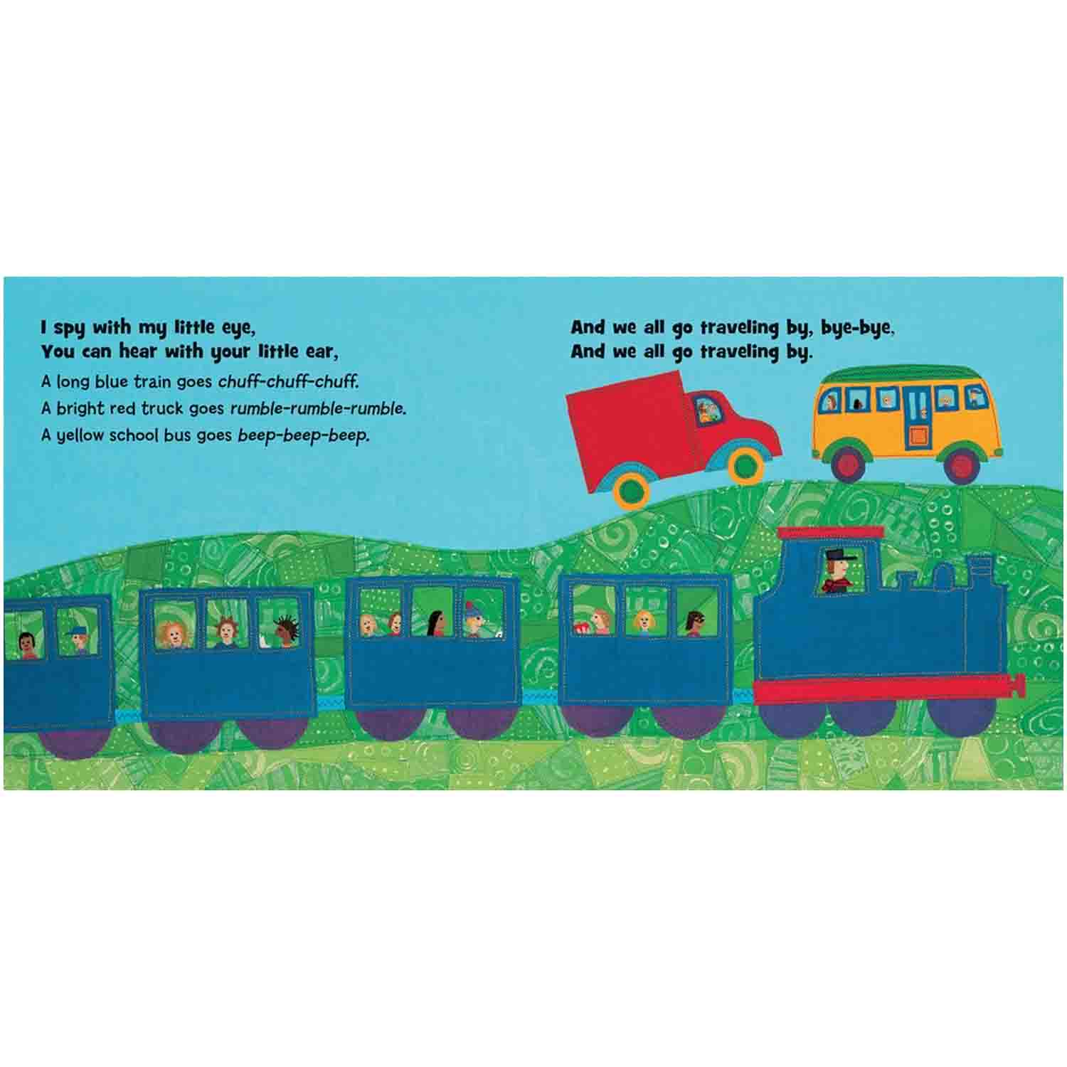 This rhythmic I-spy journey to school through various landscapes is the perfect introduction to colors, modes of transport, and of course, music! The jaunty text, Siobhan Bell's colorful hand-stitched illustrations and the accompanying music by popular singer Fred Penner are sure to get children singing along happily.