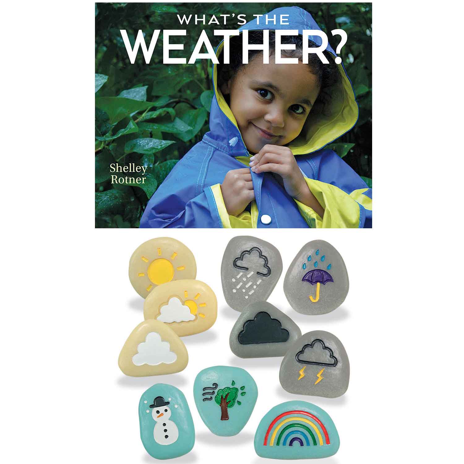 These tactile weather stones can be used for forecasting, reporting, or storytelling in any kind of weather! Weather symbols include dark cloud, light cloud, hail, rain, rainbow, snow, sun, sunny intervals, thunderstorm, and wind. Made from durable stone and resin mix. The book uses stunning photography and text to show off the wonders of the weather!