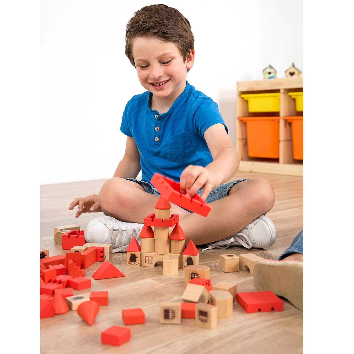 Recreate endless scenarios and stories with these green-friendly castle blocks while promoting creativity, social and fine motor skills. The Wooden Castle Blocks reinforce basic concepts such as shape, size as well as balance and symmetry.