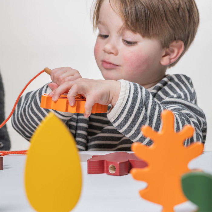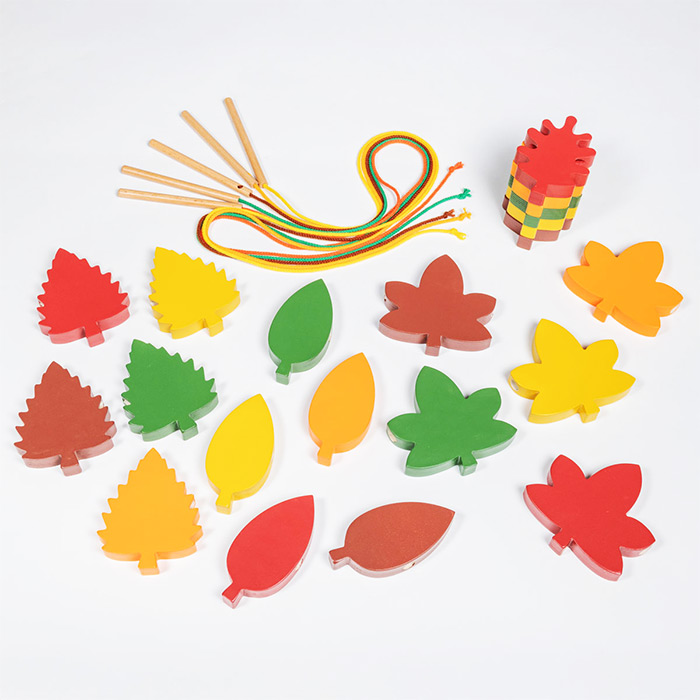 The Wooden Lacing Leaves set is a versatile and educational tool for learning about seasons, lacing, and sequencing. Children will discover the beauty of leaves changing colors throughout the year while practicing lacing and sorting skills. Whether lacing leaves onto strings by type, color, or creating unique patterns, this set encourages creativity and fine motor development. Hang them up, lay them flat, or let them stand on their own; the options are endless with these versatile leaves.